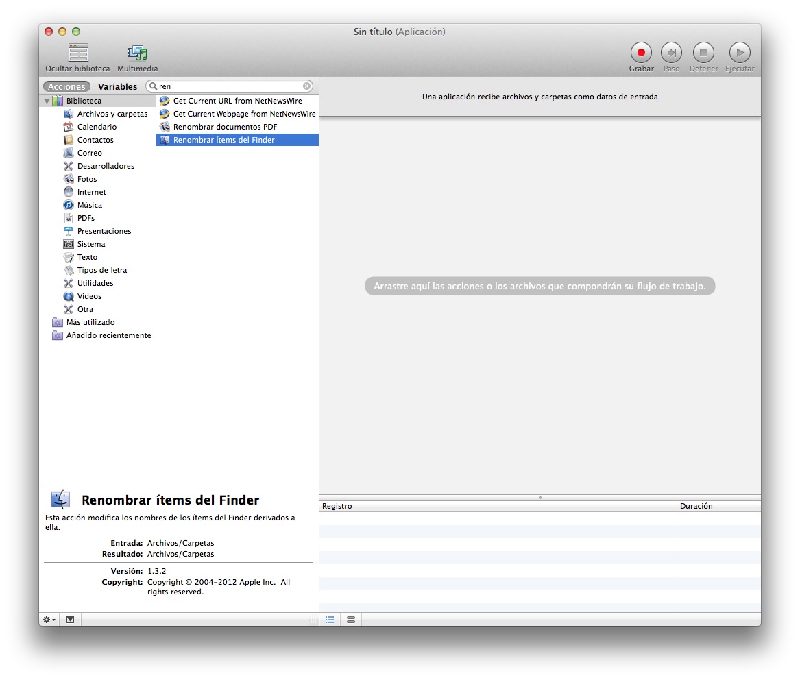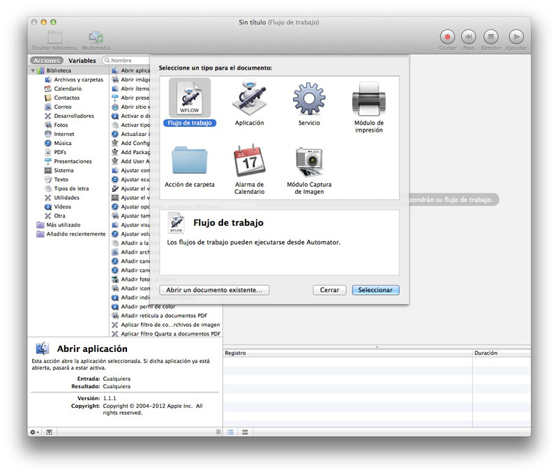 (NOTA: Este tutorial está basado en la versión de Automator para OS X 10.9 «Mavericks». Desconozco si sirve para versiones anteriores)